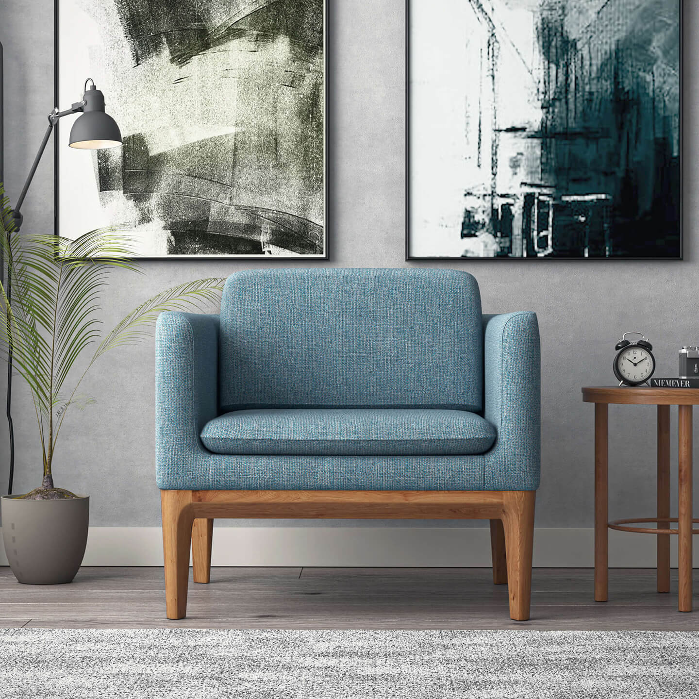 A specious armchair with minimalist approach and the best of mid-century modern design